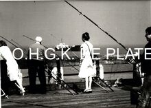 Formaat : 8,5 x 12,5 cm. - Groepsfoto aan de Sir Winston Churchillkaai