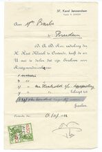 Certificaat van tewerkstelling in het Royal Palace Hotel van de heer Félix Terreau als dessertkok in de keuken. Gedateerd Septembre 1927