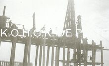 Formaat : 19 x 26,5 cm. - Zicht op de zeesluis en brug naar het eerste handelsdok, rechts een deel van het station