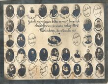 Formaat : 17,3Β x 22,5 cm. - Gedenkt onze 26 dappere helden en onze 12 burgerlijke slachtoffers van den wreeden oorlog 1914-18. Molendorp, den 14 november 1920. De namen van de slachteroffers staan op de foto.