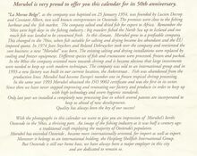Uitgegeven naar aanleiding 50 jaar Morubel 1954 - 2004. - De illustraties van de kalender zijn afzonderlijk beschreven. Klik op het inventarisnummer.