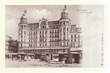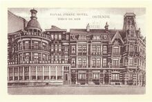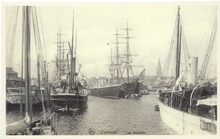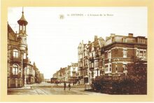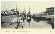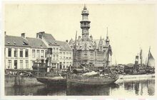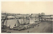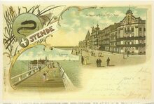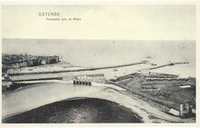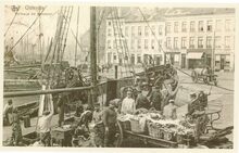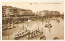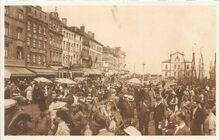 Op sommige periodes, vooral rond de feestdagen kon en kan het nu nog zeer druk zijn langs de Visserskaai. Hier een zicht waarop men trams tussen de drukte ziet rijden. Rechts ziet met het gebouw van de oude reddingsdienst, de "Permerensje" (=Permanence) (circa 1930) (Omer Vilain)