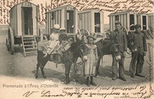 Formaat : 9 x 14 cm. - Wilhelm Hoffmann 3101. - Promenade ร l'รnes d'Ostende. - In de achtergrond de gekende badkarren