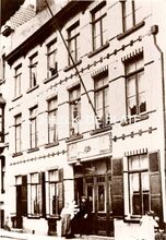 Formaat : 15 x 10 cm. - Gevelopschrift : Meubelmakerij Achille Peeren & Zoon. Opschriften op winkelruiten : links : Achille Peeren & Zoon. Meubelmakerij ; rechts : Alle Slach van Meubels in Magazijn.