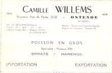 Advertentie : Camille Willems 1889 - 1936, Nouveau Port de PΓͺche 21-22, Ostende. Poisson en gros. Importation, Exportation