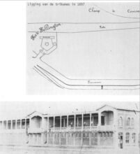 Foto : De eerste Oostendse verbrandingsoven (1909). - Gelegen langs het kanaal Oostende Brugge. In de volksmond ''strontfabriek'' genoemd