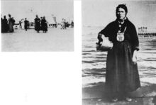 Foto : De Van Iseghemlaan met de ingang van het bekende aquarium, dat ondergronds gelegen was (1907). - Met op de voorgrond de vastenstoet van 1 april 1907