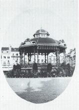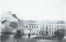 Foto : De Square Baudouin (thans Sint Petrus en Paulusplein) (1897). - Op de achtergrond links de vissersschool Sint Andreas, rechts CafΓ© de La Petite Bourse,. - In 1858 Sint Jozefplaats, vanaf 1891 Square Baudouin