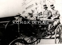Formaat : 8,5 x 12 cm. - In een koets met Koning Leopold II