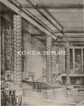 Formaat : 6,5 x 8,5 cm. - De noordgevel van de derde Kursaal langs de Zeedijk, gezien vanaf het Groot Strand op een golfbreker.