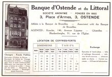Advertentie : Banque d'Ostende et du Littoral. Wapenplein 3, Oostende