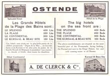 Advertentie : Ostende : les grands hΓ΄tels de la plage sont : Le Splendid, La Plage, Le Continental, Le Kursaal & Beau Site. Digue de Mer, Ostende