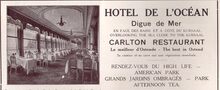 Advertentie : Hotel de l'OcΓ©an. Carlton Restaurant. Zeedijk, Oostende