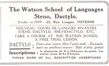 Advertentie : The Watson School of Languages Steno, Dactylo. Langestraat 23 , Oostende