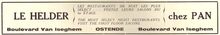 Advertentie : Le Helder ; Chez Pan. Van Iseghemlaan, Oostende