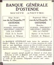 Advertentie : Banque GΓ©nΓ©rale d'Ostende. Kapellestraat 77, Oostende