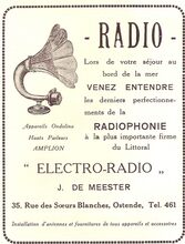 Advertentie : "Electro-Radio" J. De Meester. Witte Nonnenstraat 35, Oostende