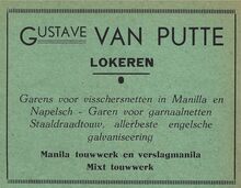 Advertentie : Gustave Van Putte, Lokeren. - Garens voor visschersnetten in Manilla en Napelsch, garen voor garnaalnetten, staaldraadtouw, allerbeste engelsche galvaniseering, Manila touwwerk en verslagmanila, mixt touwwerk