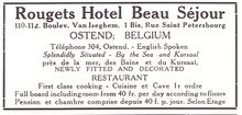 Advertentie : Rougets Hotel Beau SΓ©jour. 110-112 Boulev. Van Iseghem, 1 Bis Rue Saint Petersbourg, Ostend