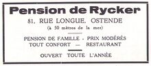 Advertentie : Pension de Rycker. Langestraat 81, Oostende