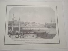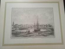Zicht op het eerste station en tweede handelsdok gezien vanaf de Kapellestraat rond 1847