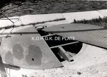 2 foto's : (1) Koning Albert I met de "Ibis III" naar zee en (2) de "Pionier I", die het eerste door Koning Albert I van een motor voorzien werd