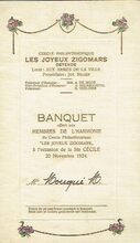 Banquet offert aux membres de l'harmonie du Cercle Philanthropique "Les Joyeux Zigomars", à l'occasion de la Ste Cécile le 20 novembre 1924