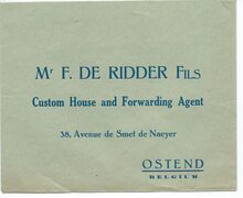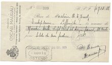 Vervaardigen van blauwe kepie met vermelding in gouden letters Hotel Mirabeau. Het hotel was gelegen in de Kemmelbergstraat 28, Oostende