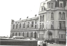 Formaat 8 x 12 cm. - De drie villa's die deel uitmaakten van het oorspronkelijke gebouw die dienst deden als pensionaat op de hoek van de Zeedijk en de 17 Oktoberstraat