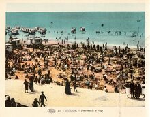 Formaat : 9 x 14 cm. - Marco 5c. - Ostende - Panorama de la Plage. Bijgekleurde kaart