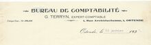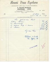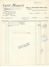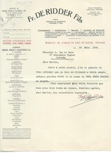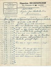 Successeur de L. Desmedt-Valcke. - Spécialité de stores-tentes brevetés. Foyers pour salons. Fourneaux d'hotel et cuisinières en tous genres. Fourneaux a gaz. Réparations. Entretien. Dépositeur du Meteor. Ferme-porte pneumatique