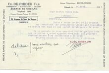 Concessionnaire pour Ostende et Littoral des bières de la Ste Ame Anc. Bries Vandenheuvel & Cie