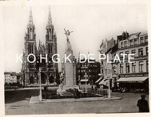Formaat : 6 x 8,5 cm. - Op de voorgrond het Monument van de