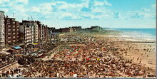 KrΓΌger. - Oostende - Algemeen Strandzicht. Vue gΓ©nΓ©rale de la Plage. A General View of the Beach. Blick auf den Strand. - Strandrecreatie op het Groot Strand, vanaf de Kursaal richting Mariakerke. Links, de Albert I-promenade nabij de badinstallaties