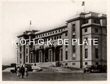 KrΓΌger. - Oostende - Kursaal en Strand. Kursaal et Plage. Kursaal and Beach. Kurhaus und Strand. - We zien de west- en noordgevel van de Kursaal gelegen langs de Albert I-promenade vanaf het Groot Strand. Kinderen verpozen op een golfbreker