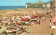 Edit. V.G. [=Victor Grégoire], 42, Avenue du Midi, Bruxelles, 142. - Ostende - La plage et châlet Royal