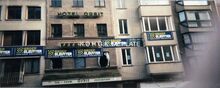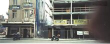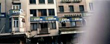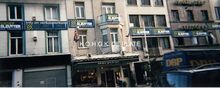 Formaat : 10 x 25 cm. - Van links naar rechts CafΓ© De Illusie, vroeger een boekwinkel en op de hoek met de Vrijhavenstraat BP station Palmerhouse