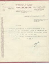 Brief naar meester Vande Male voor zijn positieve tussenkomst betreffende betaling van factuur