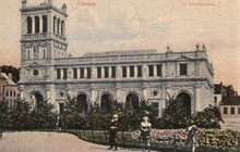Grandes aleries Belges, Ostende. NΒ° 3111a. - Ostende. - La nouvelle poste. - Het postgebouw in de Hendrik Serruyslaan gezien vanaf het Leopoldpark. - Bijgekleurde kaart