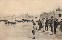 Nels, Ern. Thill, Bruxelles, sΓ©rie 13, NΒ° 35. Ostende La Plage vers l'hippodrome Wellington. We zien helemaal rechts het Royal Palace Hotel, maar weinig van de Wellingtonrenbaan