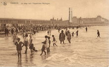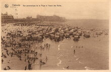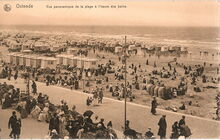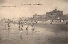 Ostende Vue dur la plage. Links in de achtergrond het Royal Palace Hotel