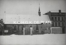 Formaat : 12 x 18 cm. - De kerk gezien vanaf het Mijnplein met helemaal links de Kapucijnenstraat.