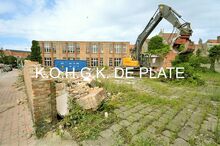 Formaat : 10 x 15 cm. - Afbraak Heilig Hart school , hoek Karel Van de Woestijnestraat en de Sint-Catharinapolderstraat. De school verhuisde naar de Clivialaan 9 (Buitengewoon basisonderwijs type 2 en type 9 begeleiding leerlingen ASS en ICN)