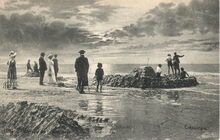 38 - ostende. - Digue vue de la plage, De dijk van het strand gezien, View of the dike from the shore. Bijgekleurde kaart