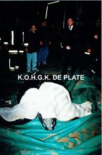 Formaat : 10 x 15 cm. - Het beeld wordt verplaatst voor de aanleg van de ondergrondse parking.