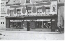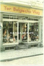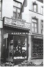 Afdruk. - Formaat : 21 x 14 cm. - Au Drapeau Belge - Confections & meseure - A. Degraeve - NouveautΓ©s Anglaises - confisseur de la marine. Later kwam hier de elektriciteitszaak van Oscar Alleyn