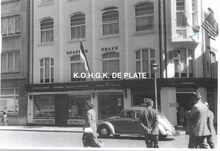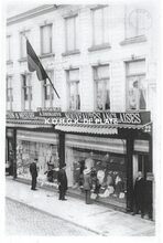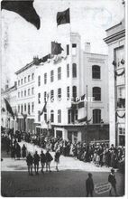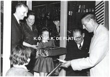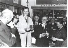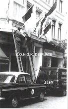 Afdruk. - Formaat : 12 x 17 cm. - Burgemeester Piers opent de nieuwe zaak in de Kapellestraat 87