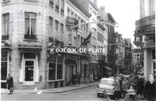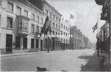 Afdruk. - Formaat : 19 x 12 cm. - Gelegen Kaaistraat 14 (met vlag). Op de hoek met de Ooststraat, apotheek Georges Degraeve