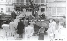 Afdruk. - Formaat : 14 x 19 cm. - EΓ©n van de beelden van het Monument voor de Zeelieden dat in de loop van 1953 opgetrokken werd.