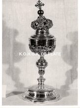 Ciborie uit de eerste helft van de 18e eeuw, is in de katholieke liturgie de kelk waarin de geconsacreerde hosties worden bewaard. In tegenstelling tot de miskelk heeft de ciborie een deksel, waarop doorgaans een rechtopstaand kruisje is bevestigd. Hoogte circa 35 cm
